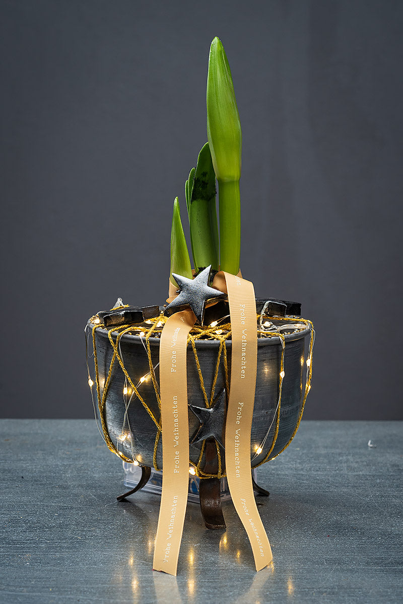 Diese Knollen sind mit speziell ausgewählten Zwiebeln handgefertigt und mit Wachs überzogen und benötigen zum Wachsen kein Wasser, da genügend Energie in der Zwiebel gespeichert ist. Man kann sich zurücklehnen und diese pflegeleichte Schönheit einfach nur genießen.