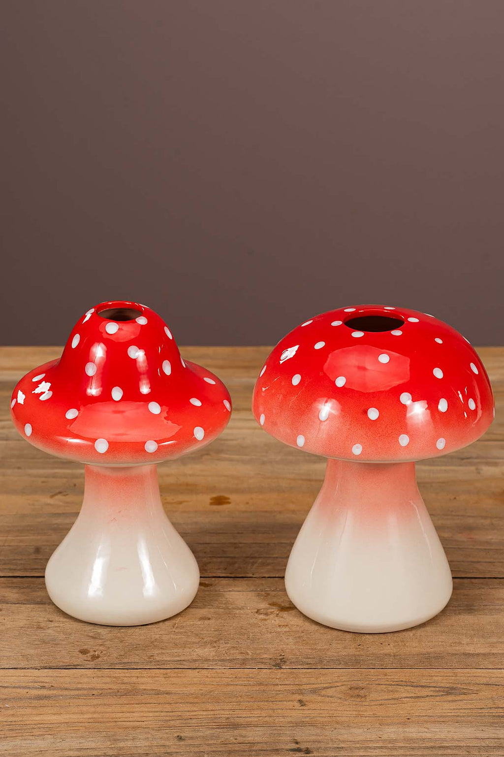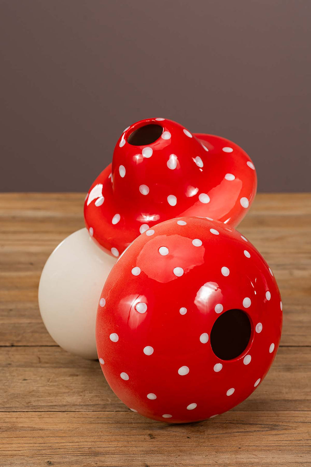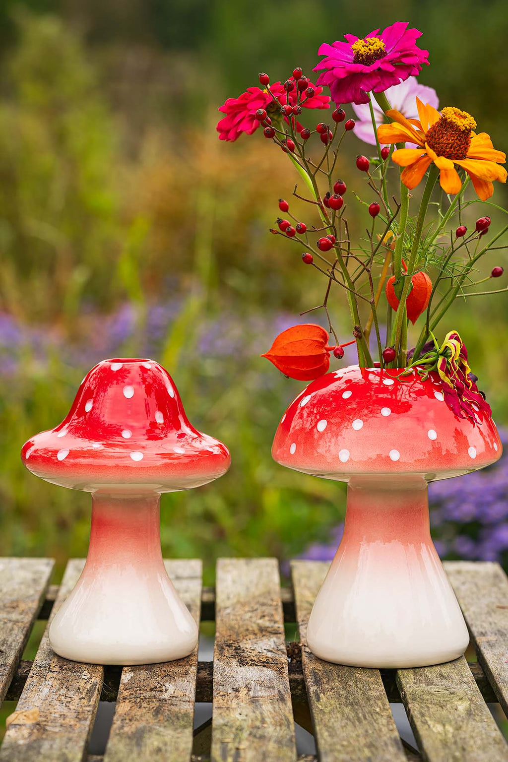 Eine Blumenvase der besonderen Art: Diese Pilze sind eindeutig ein Blickfang und werten Diese niedlichen Fliegenpilze sind nicht nur eine hübsche Herbstfigur, sondern Blumenvasen für die herbstliche Jahreszeit. Mit den natürlichen Farben passen sie perfekt in diese Saison.